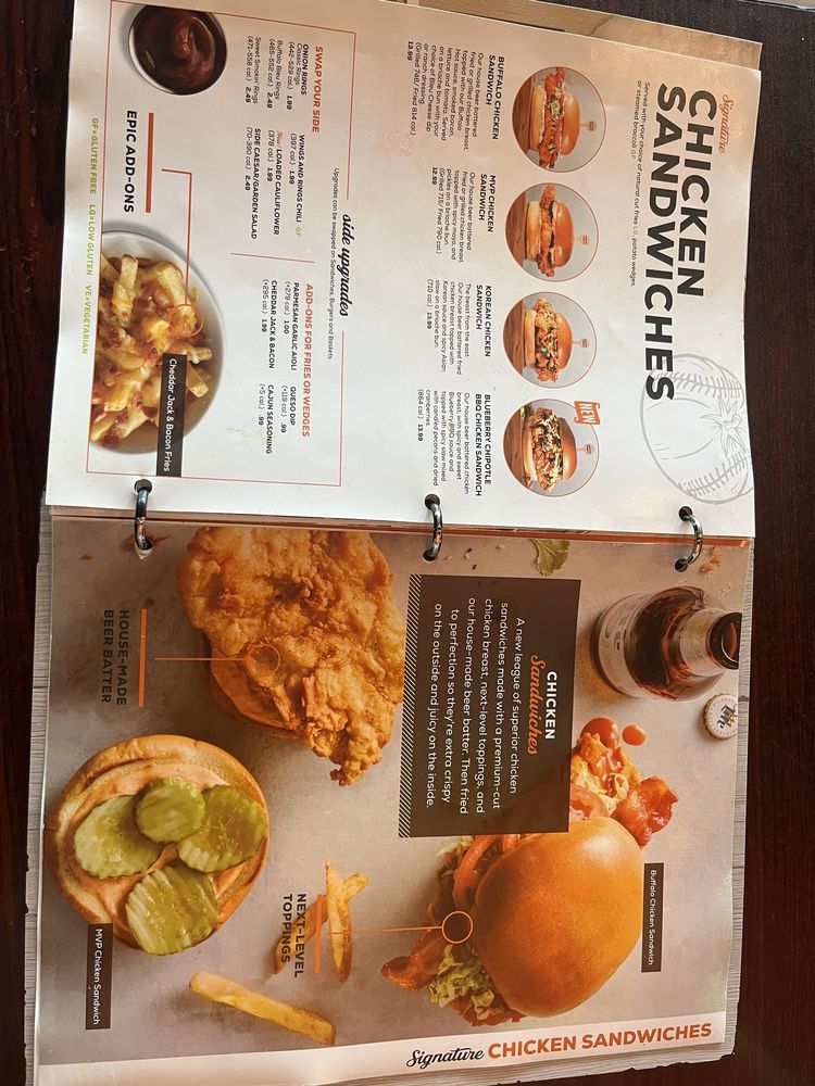 Our house beer battered fried chicken breast, topped with spicy mayo and pickles on a brioche bun.