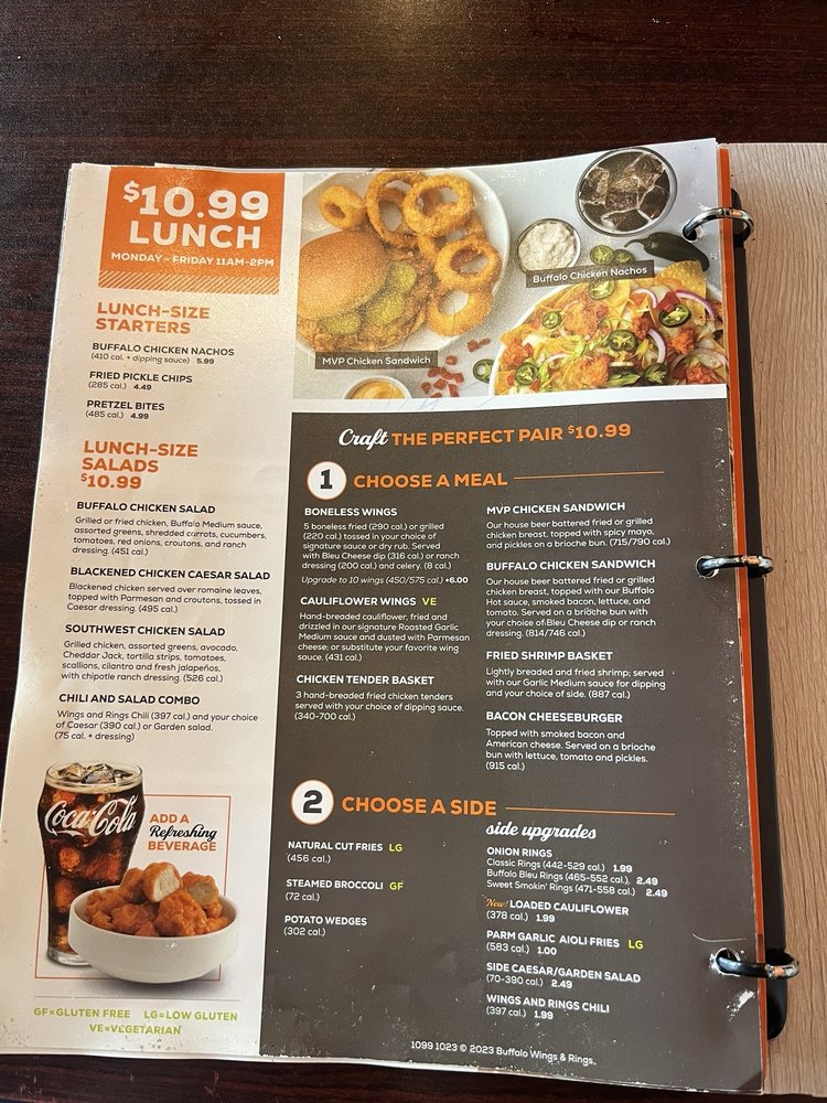 Introducing the menu at Wings and Rings, a casual dining spot in Modesto, CA, offering a variety of options including vegan and vegetarian choices. From loaded nachos and fries to flavorful chicken wraps, the menu boasts fall-inspired dishes like Curry Garlic or Pumpkin wings. Treat yourself to the Buffalo Chicken Wrap with fried or grilled chicken, or indulge in the Buffalo Bleu Rings or Sweet Smokin' Rings for a unique onion ring experience. Customers rave about the delicious food and fantastic service, with standout items like the garlic parmesan aioli fries and honey barbecue wings. With a welcoming atmosphere, great beer selection, and attentive staff, Wings and Rings is the perfect spot for a satisfying meal with friends or family. Whether you're a wing enthusiast or looking for a tasty bite, this gem of a restaurant is sure to please.